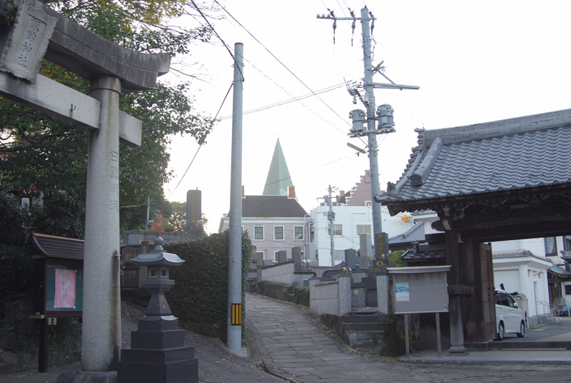 祈りの三角ゾーンと呼ばれるエリア。一カ所で大浦諏訪神社、妙行寺、大浦天主堂が見られます。不思議な空間だけど、長崎らしい。