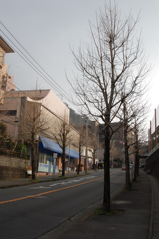 なだらかな坂道が続きます。大園小学校前を、てくてく歩きます。