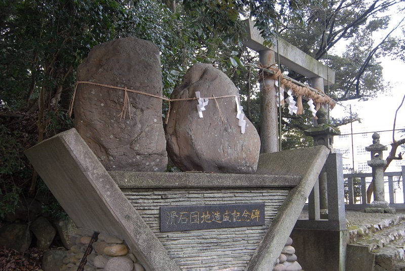 さっそく記念碑が。説明書きによると、この2つの石は、もともと滑石川の川床に鎮座していた夫婦石だそうで、昔から里の人々に大事にされてきました。「この石が流されるときは里も流失する」との言い伝えがあり、滑石の地名は、この伝説に由来しているそうです。滑石をずっと見守る夫婦石。スピリチュアルなエピソードが、ここに。