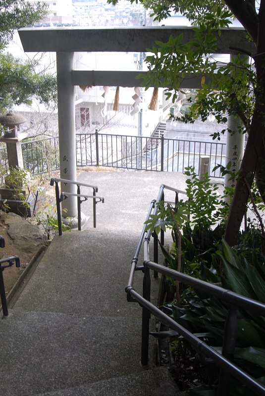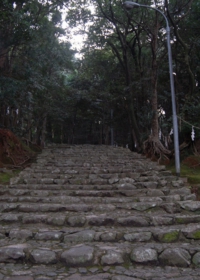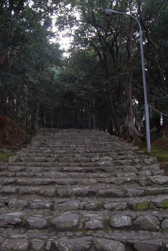 この木立――気分はなんだか熊野古道。参道に続く木々は、滑石太神宮社叢(しゃそう)と呼ばれていて、市指定天然記念物にもなっています。クスノキ、スダジイ、イヌマキなどの木々が生い茂り、森林浴も楽しめます。まったくの余談ですが、参道の石段が、足つぼに効きます。別の意味でも健康的……。