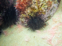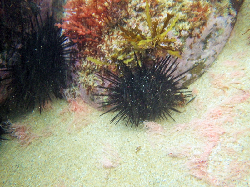 防水カメラで撮った海の中にいるウニはこんな感じ。ウニ漁する事約2時間半。