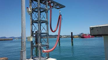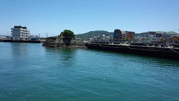 福江港から港湾に沿って右に歩くと、およそ200年弱の昔に造られた石の灯台「常灯鼻」が見えてきます。クイズ。さてこの設備はなんでしょう?正解は漁船に氷を送るパイプでした。我々はバーベキューなどで大量の氷を使うときはここに買いに来ます。40ℓのポリバケツにほぼ満タンに氷を入れてたったの100円です。岸壁に集まっている熱帯魚やアジなどを見ながらぼちぼちと散歩は続きます。