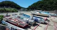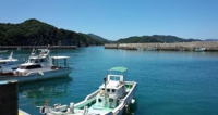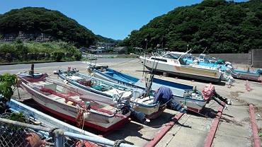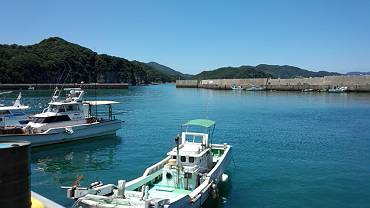 向こうに見える山の凹の所が今日の目的地、戸楽漁港です。あそこまで歩いて7分かな。集落の入り口には小ぶりのお寺さんが。いかにも古そうなたたずまいです。車がすれ違えないほどの細い道を行くと目指す港が見えてきます。素敵な風景ですよ。堤防の突端は水イカの釣りポイントです。もちろん他の魚も待っていますよ。