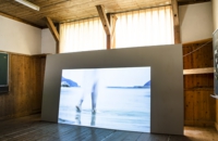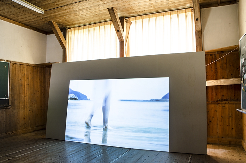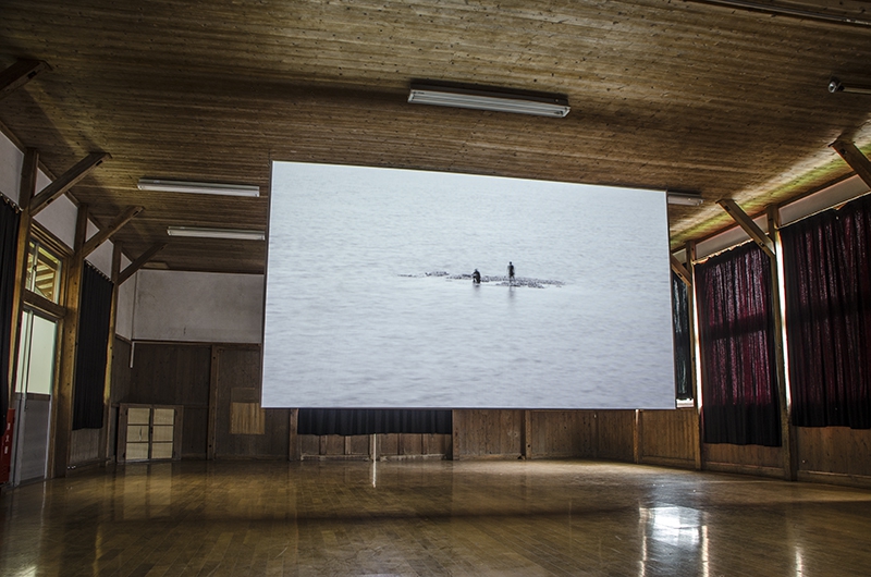 映像で表現しているのは、中国、上海生まれの潘逸舟さんの「ミュージカル・チェア」。干潮時に姿を現す瀬での椅子取りゲームの映像と、その裏側のスクリーンでは満潮時に海面下に沈んでしまった瀬が映されていて、領土問題や境界線の曖昧さを問いかけた作品でした。