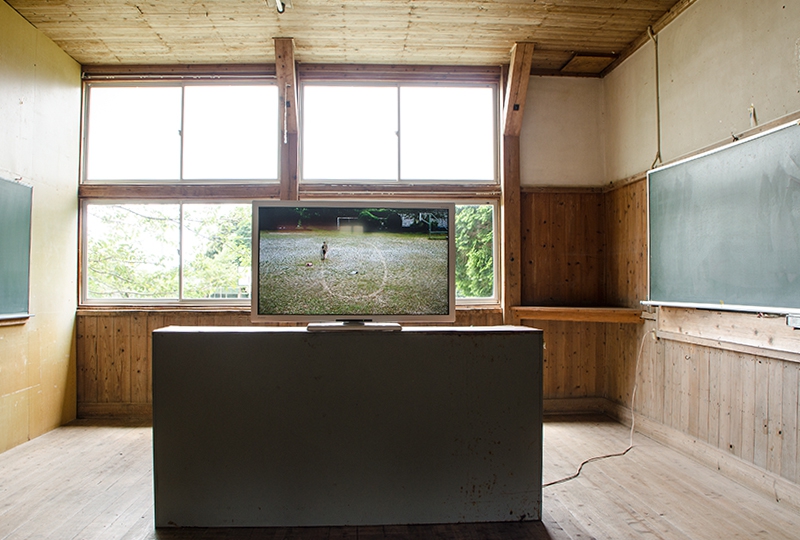 次の教室も黒田大祐さんの「幻日・ビデオ」運動場に幻日をイメージした楕円が描かれる様子のビデオでした。