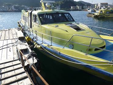 途中で道を尋ねた方が、親切に海上タクシー乗り場に案内してくれて、おまけに奈留島へ毎日工事に来ている建設会社の人たちの便に相乗りする交渉までしてくれたおかげで、無事にしかも安く福江に帰って来ることができました。こちらが海上タクシーです。