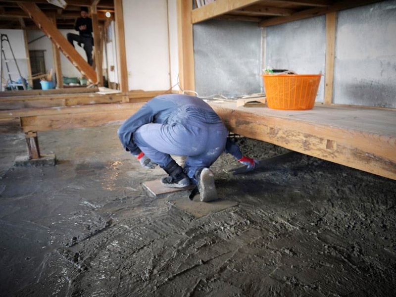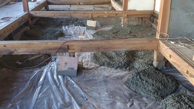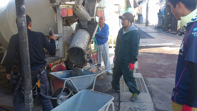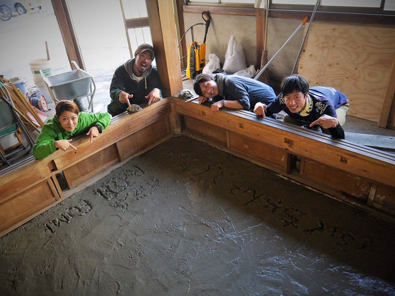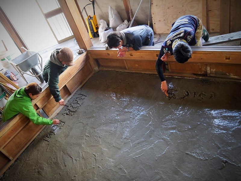 壱岐ゲストハウスは日々、友人や業者さん、職人のおかげ様で順調に改装が進んでいます。先日は同じ長崎の島つながりで小値賀島と上五島からも助っ人が来てくれました。今回の大仕事は1階の床下に湿気対策のためコンクリートをひいていく作業。なるべく自分たちで作っていくスタイルなので、この作業もみんなでやっちゃいますよ!指導は大工さんにしてもらいました。防湿シートの上にコンクリを流していきます。防湿シートの上にコンクリを流していきます。