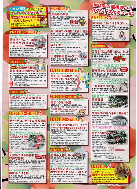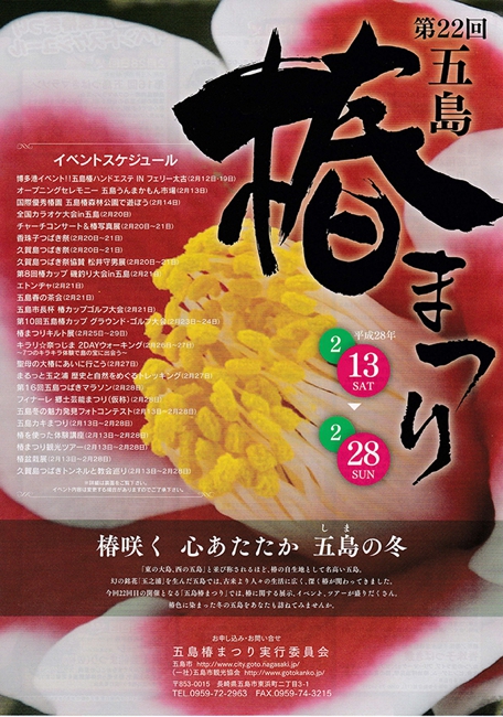 五島椿まつり実行委員会 TEL 0959-72-2963でお尋ねください。
