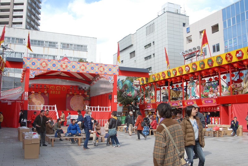 とはいえ、まったくランフェス気分を味わえないのもなんなので、湊公園にある祭壇へゴー。よく映画やドラマで見られる、あの細長い線香を灯しつつ、1年の幸せを願います。行列ができますが、豚の頭のお供え物など、中国色満載なので、見るだけで楽しい。ぜひおまいりを。