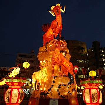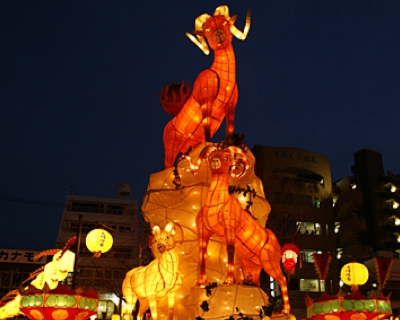 新地中華街会場の湊公園には、今年の干支にちなんだランタンが飾られます。今年はヒツジ。カワイイ系というより、本物のヒツジを忠実に再現したリアル系。余談ですが、巳年だった時、ヘビ嫌いの私はとぐろを巻いた、あまりの迫力に写真撮影はおろか直視できませんでした……。