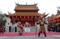 龍踊りや中国雑技など、様々なイベントが行われますが、特におさえておきたいイベントは2つ。皇帝パレードと媽祖行列です。写真の皇帝パレードは、清朝時代の皇帝と皇后が揃って街に出かけて、民衆とともに新年を祝う様子をイメージしたもの。皇帝と皇后のみこしに、旗隊など総勢150名の絢爛豪華なパレードは圧巻です。
