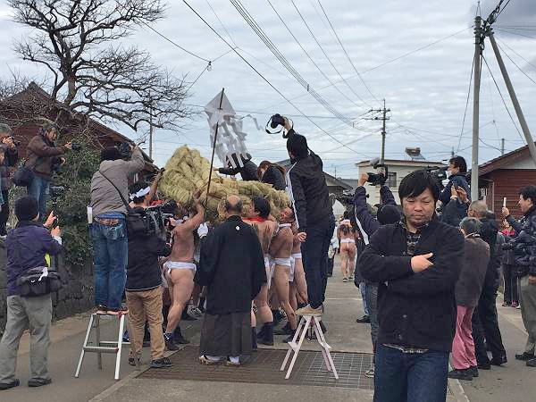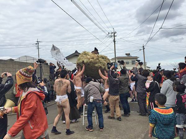 ニュースなどでも毎年取り上げられるから、ご存知の方も多いと思います。長さ3mはあろうかという「大わらじ」の上に手当たり次第、女性たちを担ぎ入れてワッショイワッショイとやる「大わらじ」奉納が有名です。