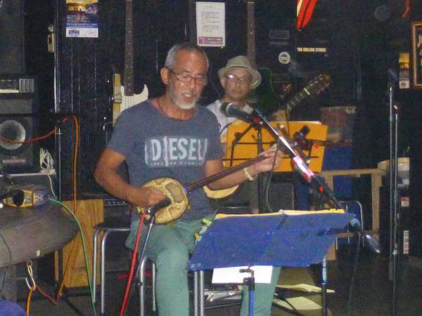 写真はライブ風景で、申し訳ないですが後ろがチンさんです。彼が暮らしているのは福江港から堂崎教会方向へ向かって車で30分程走った山奥の4軒集落、嵯峨瀬。どこに出しても恥ずかしくない限界集落の鉄板です。