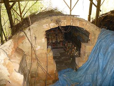 飾りつけの方法を説明しています。本職の陶芸の方は20代の初めから、関西の陶芸家の方に内弟子として指導を受けて、独立してからは五島に窯を作り、主に生活雑器を焼いて、福岡の画廊などで個展を開いたりしています。 雑器以外にももちろん創作陶器を焼いています。