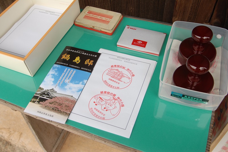 鍋島邸を訪ねてみることにしました。長屋門の受付で入館料を支払い(大人300円)、くぐり抜けると記念スタンプ発見。記念スタンプを見ると、無意識のうちに押している私は、今回も迷うことなく紙にプッシュ。国指定重要文化財の文字がまぶしい。記念にどうぞ。