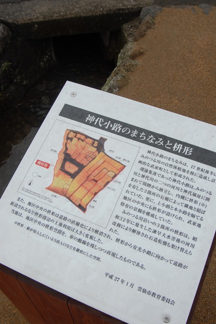 平成17年に伝統的建造物群保存地区の指定を受けた神代小路(こうじろくうじ)。江戸時代の区割りを、今でもほぼ残しているとか。10年ほど前に来たことがありましたが、この通り、こんなにキレイだったかな? 写真右側の立派な石垣が鍋島邸です。