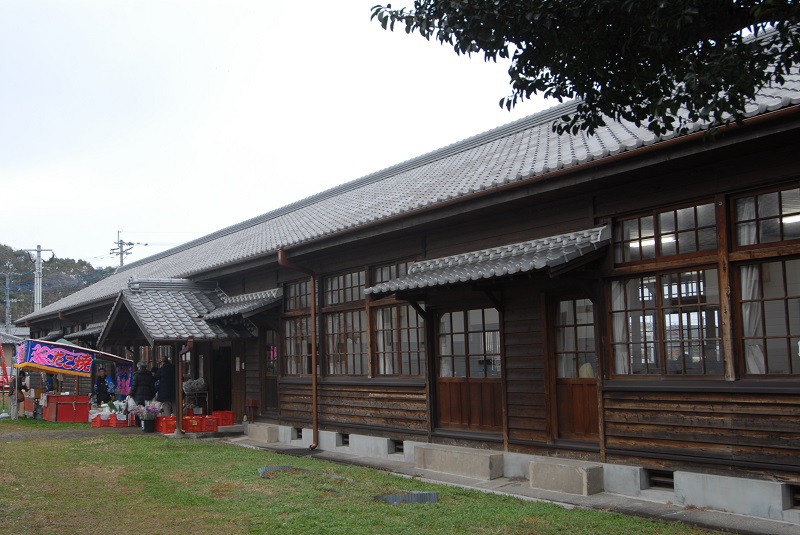 木造瓦葺の北側展示館は、もとは神代村立神代中学校の校舎。平成22年に歴史資料館として生まれ変わり、当時の学校の様子や農具や民具などの民俗資料を展示。イベント中は、国見の特産品や野菜を販売していました。