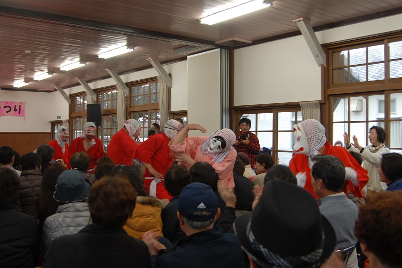 催しは、北側展示館の多目的教室で行われていました。約50名収容できる教室ですが、ざっと見ても50名以上は確実にいる大盛況ぶり。フラダンスや津軽三味線、郷土芸能のひょっとこ踊りと演し物も満載。