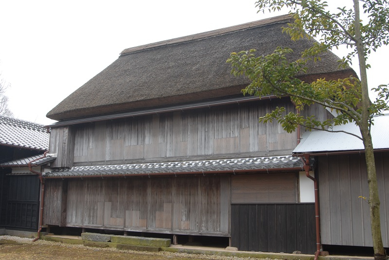 1865年(慶応元年)に完成した長屋門。最近、修理されて美しさ+強度もアップした模様。長屋門の修理写真も展示してます。