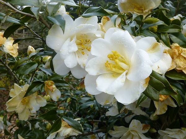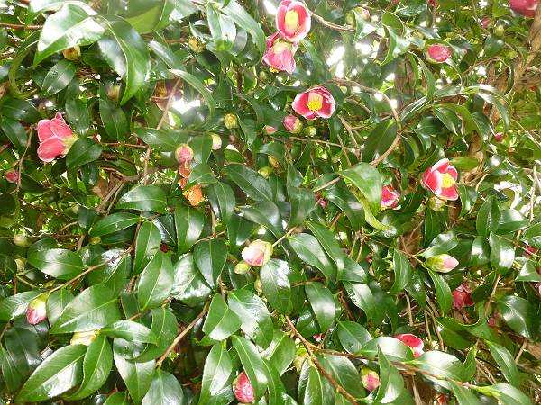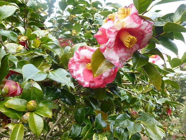 五島のシンボル、鬼岳の中腹にある五島椿森林公園は面積およそ6ヘクタール。広大な敷地に国内外の椿品種を約260種、2000本植栽しています。もっとも、Wikipediaによると世界中では途方もない数の椿品種があるそうなのでプチ自慢しかできませんけど。それにしてもすごい数です。公園は山腹にあるので行きは急勾配を歩くことになります。5分でふくらはぎはパンパンになりました。写真がマズイから勾配がうまく伝わりませんね。