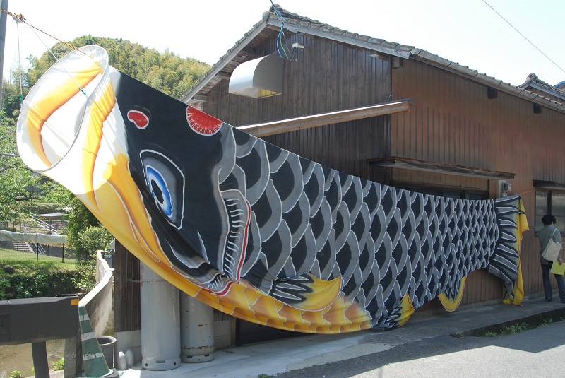 私が来たのは5日。はまぜん祭りの最終日も5日。といえば、もうひとつの、全国区の祭り・子どもの日でもありました。近頃、鯉を壁に貼るパターンが流行っている? そういえば、三川内のあちらこちらで、鯉のぼり、泳いでいたなぁ。