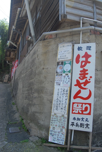 各窯元を巡る道は、車も通れないほどの細道になるところも。この「はまぜん祭り」の看板を設置していたので、迷うことはなかったですが、なだらかな上り坂が続くので、気がつくと体力を確実に消耗していた……。うつわとの出会いが楽しいから、また次、次へと歩きたくもなるんだけどね。