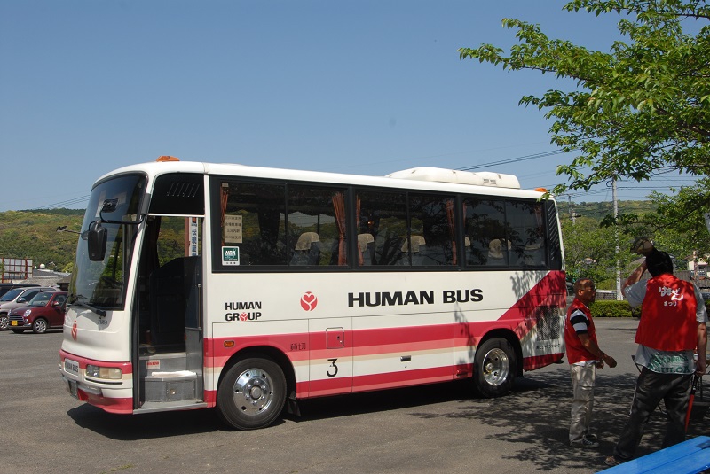 三川内の会場周辺は、細道が多いので、無料シャトルバスを利用することをオススメします。国道35号線沿いにある三川内焼伝統産業会館の駐車場に車を停めると、この無料シャトルバスがお出迎え。ラクラク~。