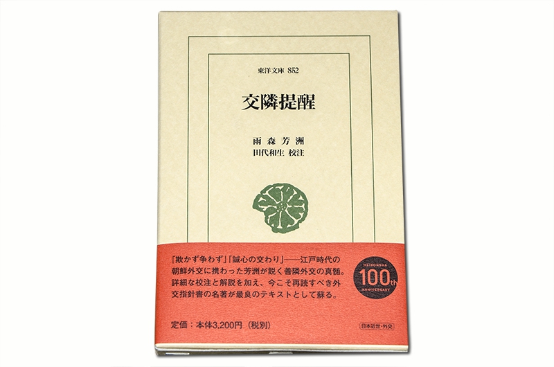 私の手元に「交隣堤醒(こうりんていせい)」があります。これは雨森芳洲が第6代対馬藩主、宗義誠へ提出した日朝交流に関わる意見書で、倭館での生活や二度にわたる朝鮮通信使との交流を踏まえて書かれた外交の思想書でとして、現在でも十分通用する事が書かれています。