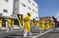 対馬藩主の居城、金石城跡の櫓門(やぐらもん)を出発した一行は、厳原港までの1.6kmの道のりを歩きましたが、この日の気温は30度を超える猛暑日。行列に参加した皆さんは大変だったことでしょう。