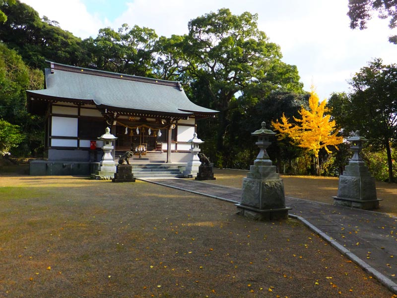 最近はすっかり冷え込み、冬模様の対馬ですがそんな冬の寒さにも負けず力強い姿を見せてくれる夫婦杉が美津島町鶏知(けち)の住吉神社にあります。周りの木々が色付いていく中で尚青々とした葉を生い茂らせているこの夫婦杉。詳しい樹齢は判明しませんでしたが、幹の太さを見るに杉の中では恐らくまだまだ若い若夫婦さんなのでしょう。