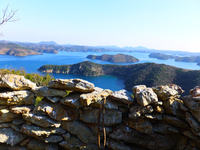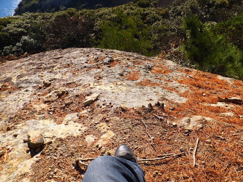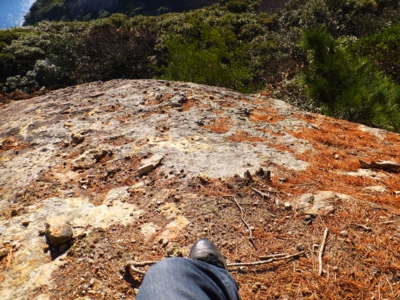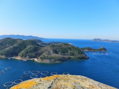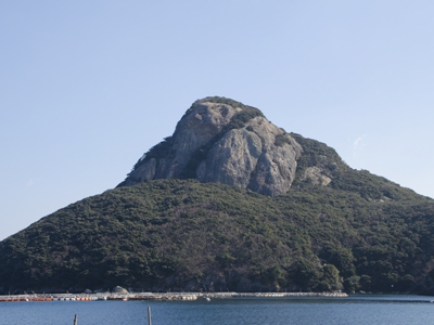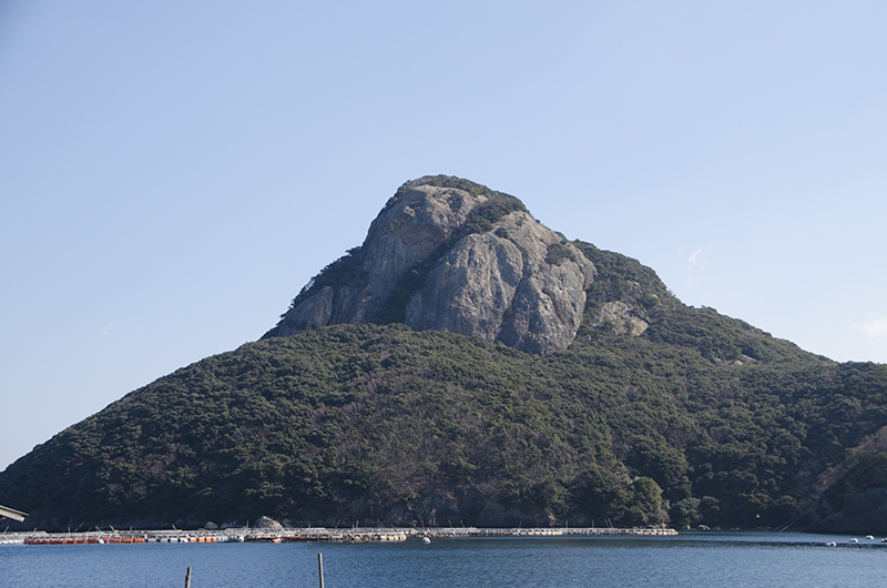美津島町にそびえ立つ飯盛山(いいもりやま)名前の通りご飯を山盛り盛ったような形の、山というよりは岩のようなこの山ですが今回は飯盛山の山頂から浅茅湾を望みます。山道は所々整備されておらず少々危険な道のりとなっています。特に岩場の部分になってからは風も強く、万が一転げ落ちたら止め処なく転がってしまいそう。気を引き締めて岩にしがみつきます。