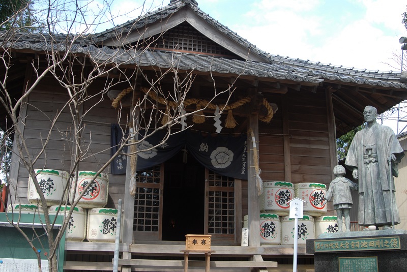 まずは左手にある祖霊社へ。地域社会に貢献した第14代の池田剛之宮司の像もあります。