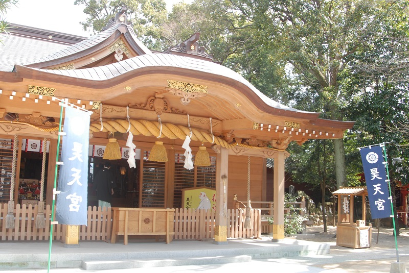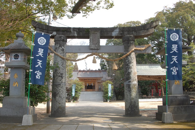 頑強そうな鳥居がお出迎え。昊天宮は、今から2000年程前(!)の弥生時代に郡川流域の平野に文化を築いた当時の豪族が、一門の氏神として祖神をお祀りしたのが始まりだとか。すごいなぁ。御祭神はイザナギノミコト、イザナミノミコトなどなど。