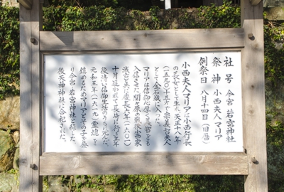 厳原八幡宮の中にある今宮、若宮神社はマリア没後に、その霊魂を鎮めるため祭られた神社で、現在は天神神社に合祀されています。