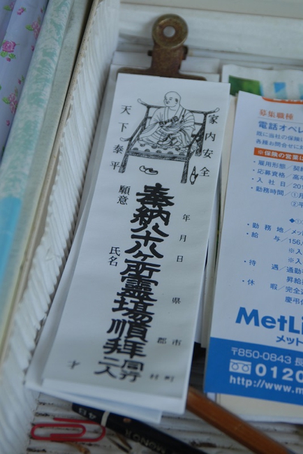 弘法大師さまのお姿が描かれたお札(紙製ですが)もありました。同行二人(どうぎょうににん)ですね。天下泰平の文字もなんだかグローバルでいい。