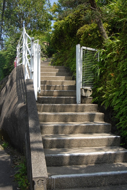 お堂から、さらに下へ行く階段を見つけたので、下ってみることに。しかし、この門はいつでも開いているのかしら?? 初心者は、上の細道から来た方が良さそうです。