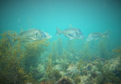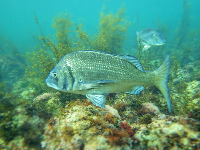 こんにちは!5月から海女漁が始まり6月初旬まで毎日ウニ漁の日々を送っておりますが、私にとって海はパワーをもらえる場所です。ウニ漁の最中もこんな光景が!漁の合間に防水カメラで撮影しました。お魚達が私の後を追っかけて常に何匹かうろちょろと私の周りを泳いでいます。この魚はチヌという名前の魚。