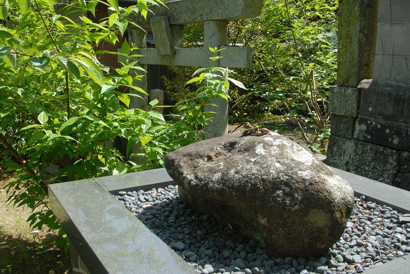 ありました、どんく石! 「どんく」とは長崎弁で「カエル」のこと。石の形がカエルっぽいから、このネーミングになったんでしょうね。カエルを「帰る」というのに引っ掛けて、戦時中は、戦地から無事に帰るようにと念じていたという切ないエピソードも残っています。今は、お金が返ってくるとか、失くしたものが返ってくるとか。水難防止だけでなく、いろんなカエルに思いを巡らせつつ願掛けできそうです。
