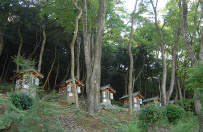 桑姫社から、さらに山の方へ。歩いて1分もかからない山林に、不思議なオーラを放つ6つの祠が見えてくるはず。ココが、もうひとつのパワースポット。