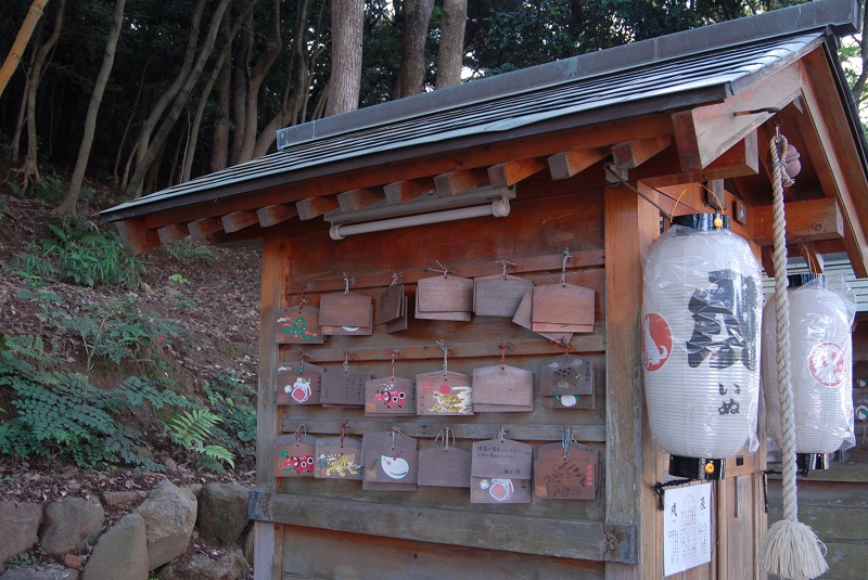 祠の横には、絵馬も掲げてありました。願い事をチラ見すると、やはり「良縁」「安産」「合格」の3本柱が多かった気がします。山林の中にあるので、周りの木々からのパワーももらった気がする。ちょっとした森林浴も楽しめるスポットですよ。