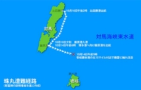 戦後初の対馬から博多港への航海を担ったのは、九州郵船の珠丸(たままる・800トン)。10月10日に対馬の北端、比田勝港を出港し同日の夕方に厳原港へ入港。鹿児島県阿久根市に上陸した台風のため厳原港で欠航を続けた後、10月14日午前6時に、足止めされていた大勢の乗客を乗せ、博多港へ向け出港しました。