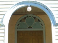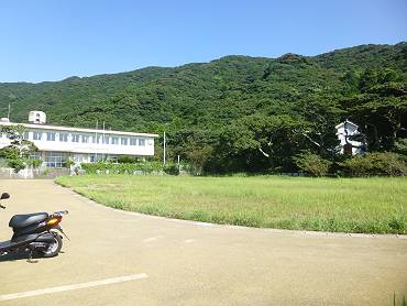 そこで、行ってきましたよ。江上教会へ。左に見えるのは、今は廃校になってしまった江上小学校です。その奥の森の中にひっそりとたたずむのが江上教会です。