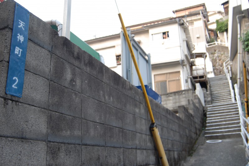 近くの子どもたちに道に聞いたら「こっちがわかりやすい」とこたえてくれました。道に慣れていない方は天神一丁目の「浦上街道」と掲げられた誘導版のある細道から入っていって下さい。ちなみにここからは車は通れません。