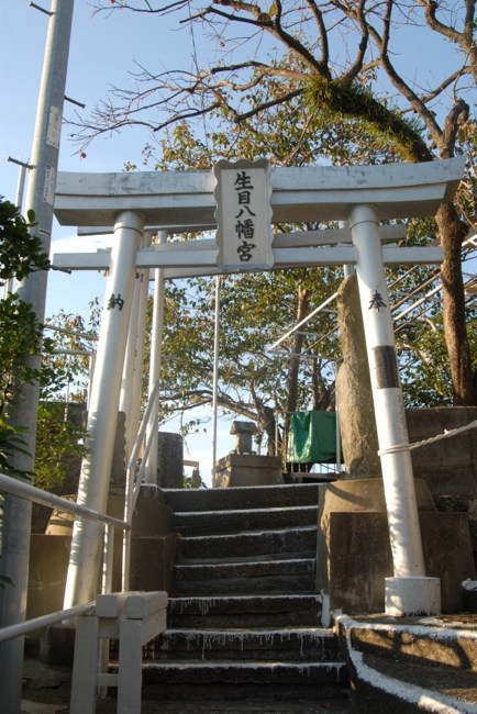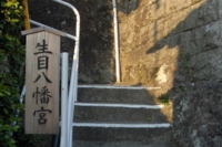 今回のメイン会場となる祠。一対の狛犬、お賽銭箱とシンプルイズベストな佇まい。パッと見たところ普通に見えますが……。生目八幡宮は目の神様で、本宮は宮崎県にあるそう。祈願のしかたは、年齢にひとつ加えた数の「目」の文字を書いて奉納すると目が良くなると言われています。
