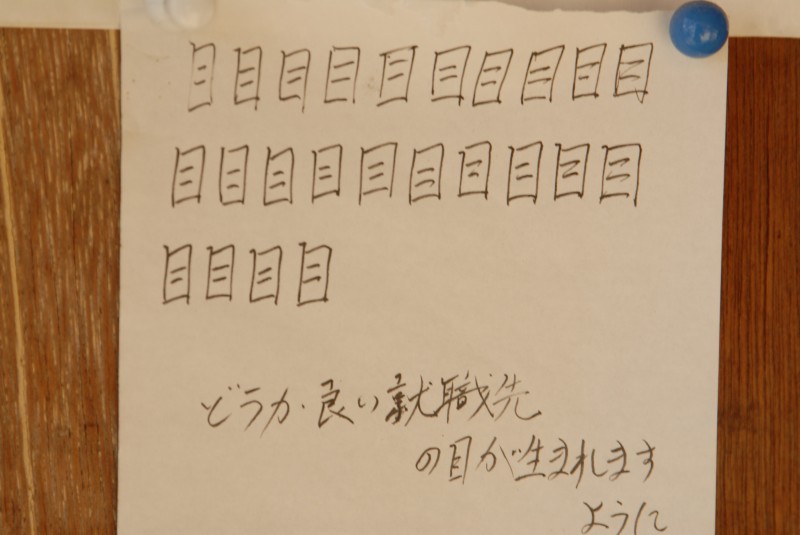上手い。こりゃ1本とられました。目が良くなる祈願のほか、「目が生まれる」などにひっかけて、商売繁盛や就職活動が上手くいくことを願う方も。この方は就活中なんでしょうね。希望の会社に就職できること、願っています!