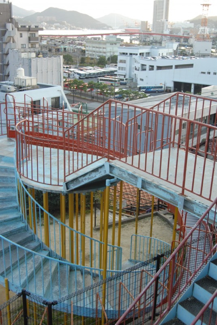 天神一丁目から生目八幡宮へ向かう途中に天神町公園があります。園内にはらせん状の滑り台があり、少し高台なので遠くに女神大橋も見渡せます。隠れたビュースポットかも。しかも絶景を見ながら滑るって、かなりテンションが上がりそう。