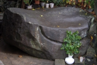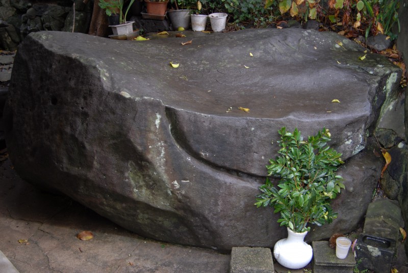 お堂から向かって右側にあるこのみかづき石が参拝スポット。眼病を患う者が祈ればご利益があると言われています。古来の長崎名勝図絵に記されているほどの神石は、形状がシャープでなんだかカッコイイ。私のイメージは美顔の剣士……。