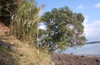 本物の鳥居は、なんと内海湾の海の中にあります。いつもは海の中にあるので、この「小島神社」には渡れません。月に2回の大潮のときにだけ、この鳥居がはっきりと現われます。太陽と月の引力によって起こる海の潮の干満。その干潮のときに海が割れて神秘の参道が現れます。