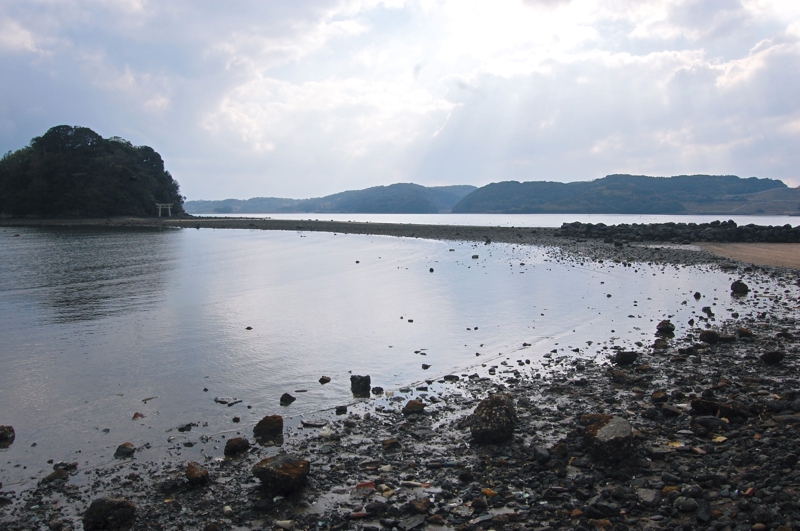 干潮のときは、鳥居をくぐって、島の反対側から神社に登ることができます。