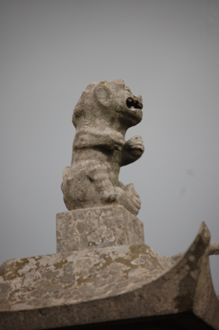 話には聞いていたのですが、なかなか行く機会がなく、今回「壱岐焼酎 七蔵めぐり」の「天の川酒造」さんの蔵から歩いてバスに乗る途中に、やっと出会うことができました。鳥居の左側の石燈籠の上に、逆立ちをしている狛犬を発見!